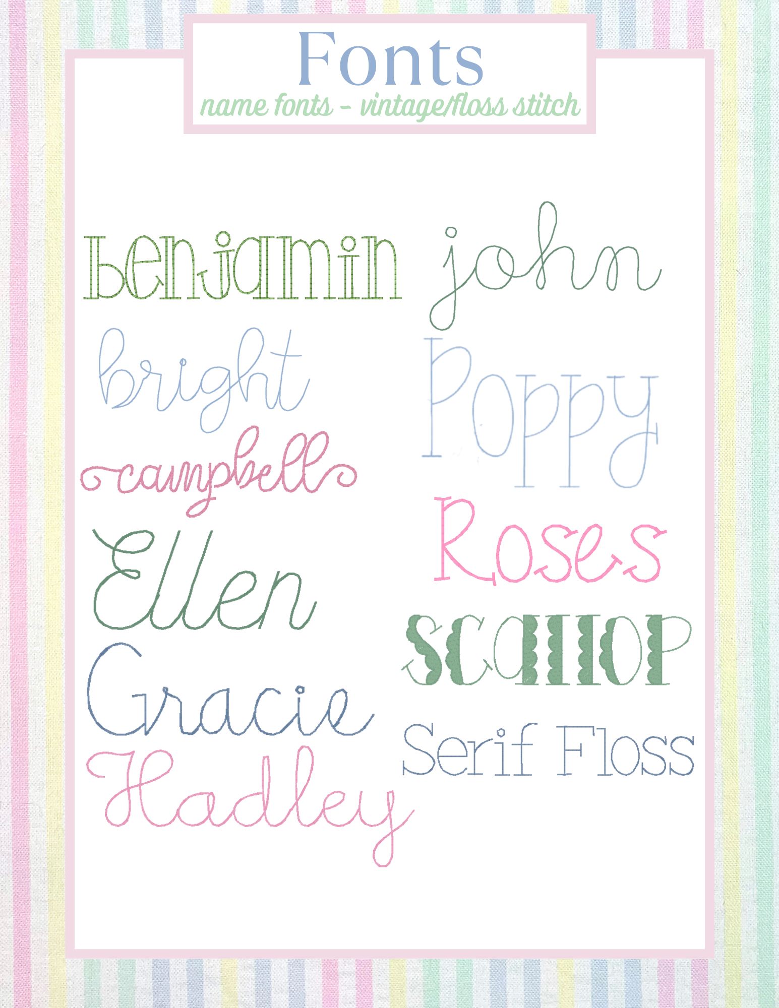 Thread chart and Motif options in the images. Please reach out if you are looking for something you don’t see!